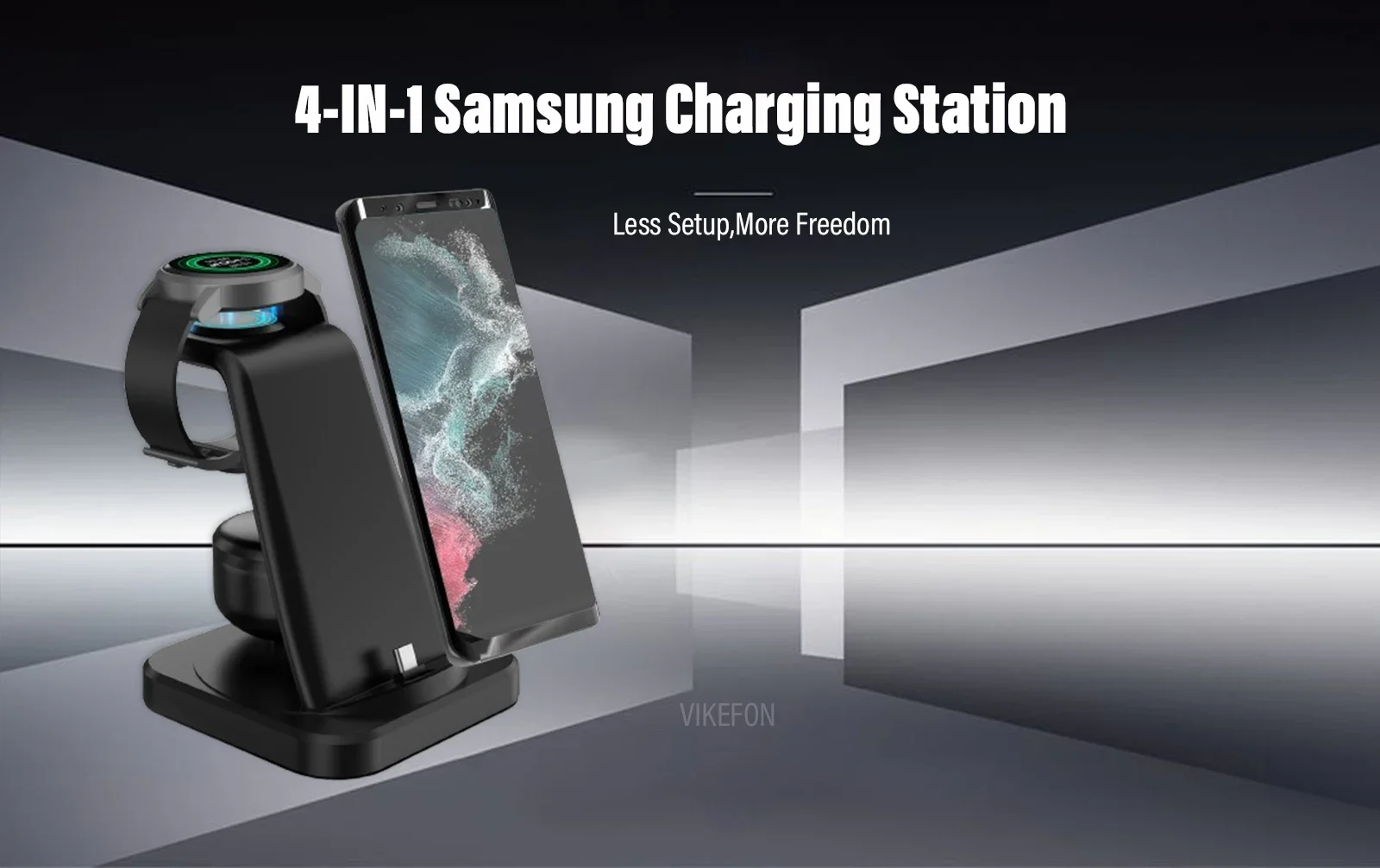 3.4 em 1carregador sem fio para todos os relógios/fones/fones de ouvido Samsung que suportam carregamento sem fio.